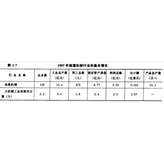 表1-7列出了1987年起重机械行业综合评价后的基本情况。